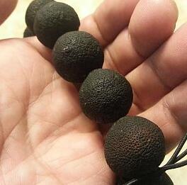 青柑仔是從新會柑樹開花結果后采摘下來的,個頭小小的,每采摘一個,就意味著少了一個長大的新會柑,所以產量比較少,比較珍貴,收藏價值高。不同產區的青柑仔價格也會有所差異,核心產區的青柑仔價格還會稍高點,像梅江絕版青柑仔價格已達1200元/斤。正宗新會青柑仔有一種特殊的香氣,其香氣清新怡人,表皮油胞均勻密集,表皮凹凸不平。柑胎干制直徑一般在1.5厘米以內為佳,太大果酸味會較重。這是由于里面已經長出了果肉,這就是小柑胎為什么會酸的原因,太大了,那是不是越小就越不會酸了呢,也不見得,這就得看品種和產區了。大柑胎串聯成手鏈,香氣怡人,聞一聞可以抗疲勞,舒緩心情。