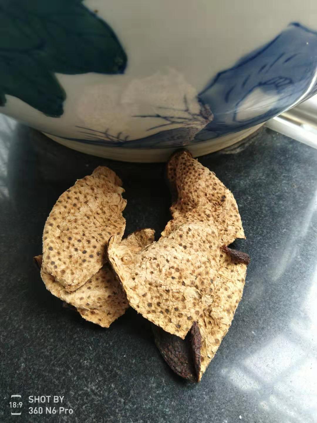 上圖曬干后的陳皮內囊,一個個密密麻麻的油孔,多見于老樹或樹底果。