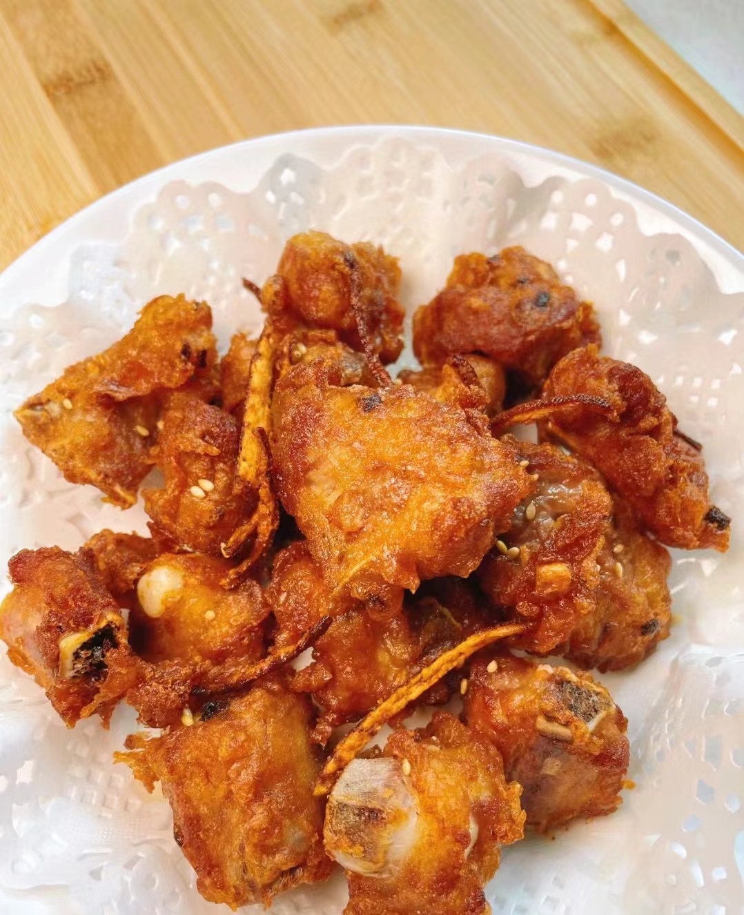 5、最后炸一點陳皮絲,然后放在排骨點綴,出餐~